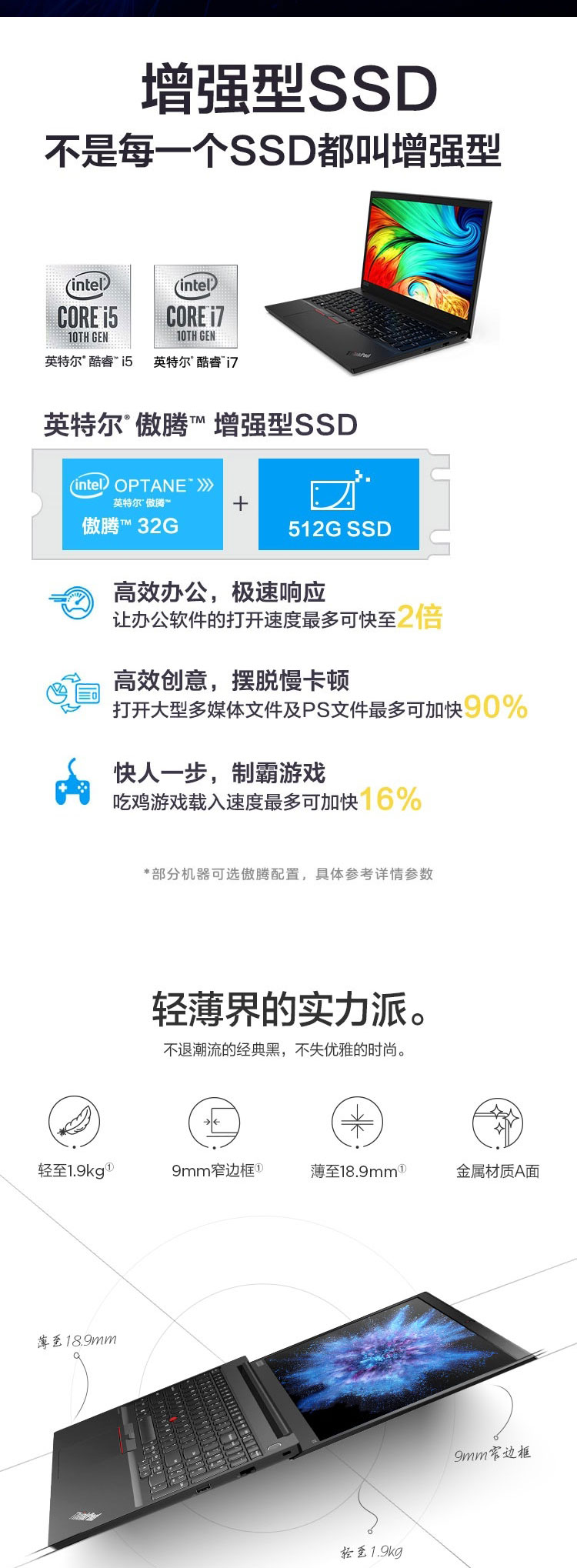联想(ThinkPad)E15-07CD 15.6英寸商用轻薄笔记本电脑 i7-10510U/16G/512GSSD/FHD/2G独显/包含鼠标和包