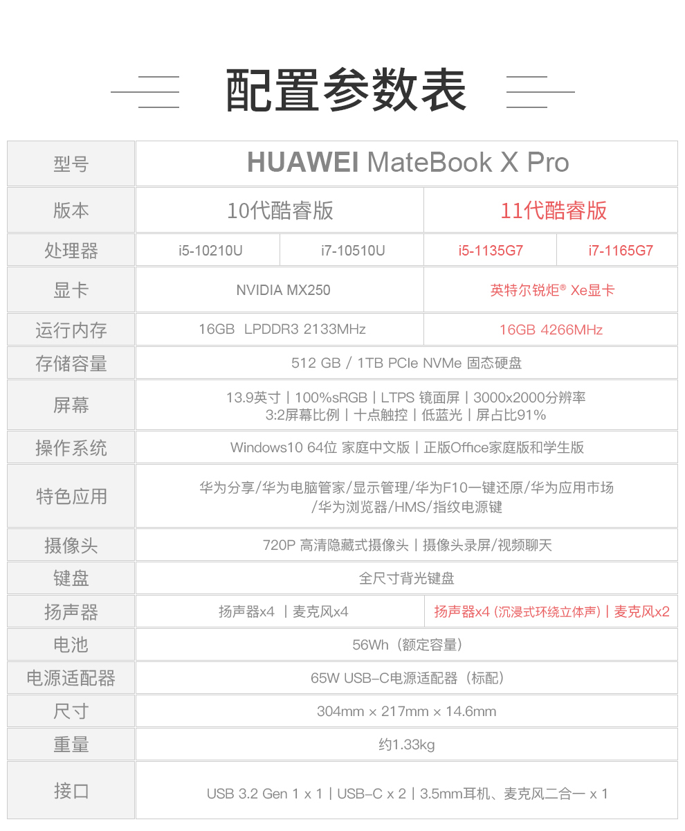 华为笔记本MateBook X Pro 13.9英寸超轻薄电脑全面屏金属商务办公手提超极本 深空灰十一代i7 16G+1TB 固态集显